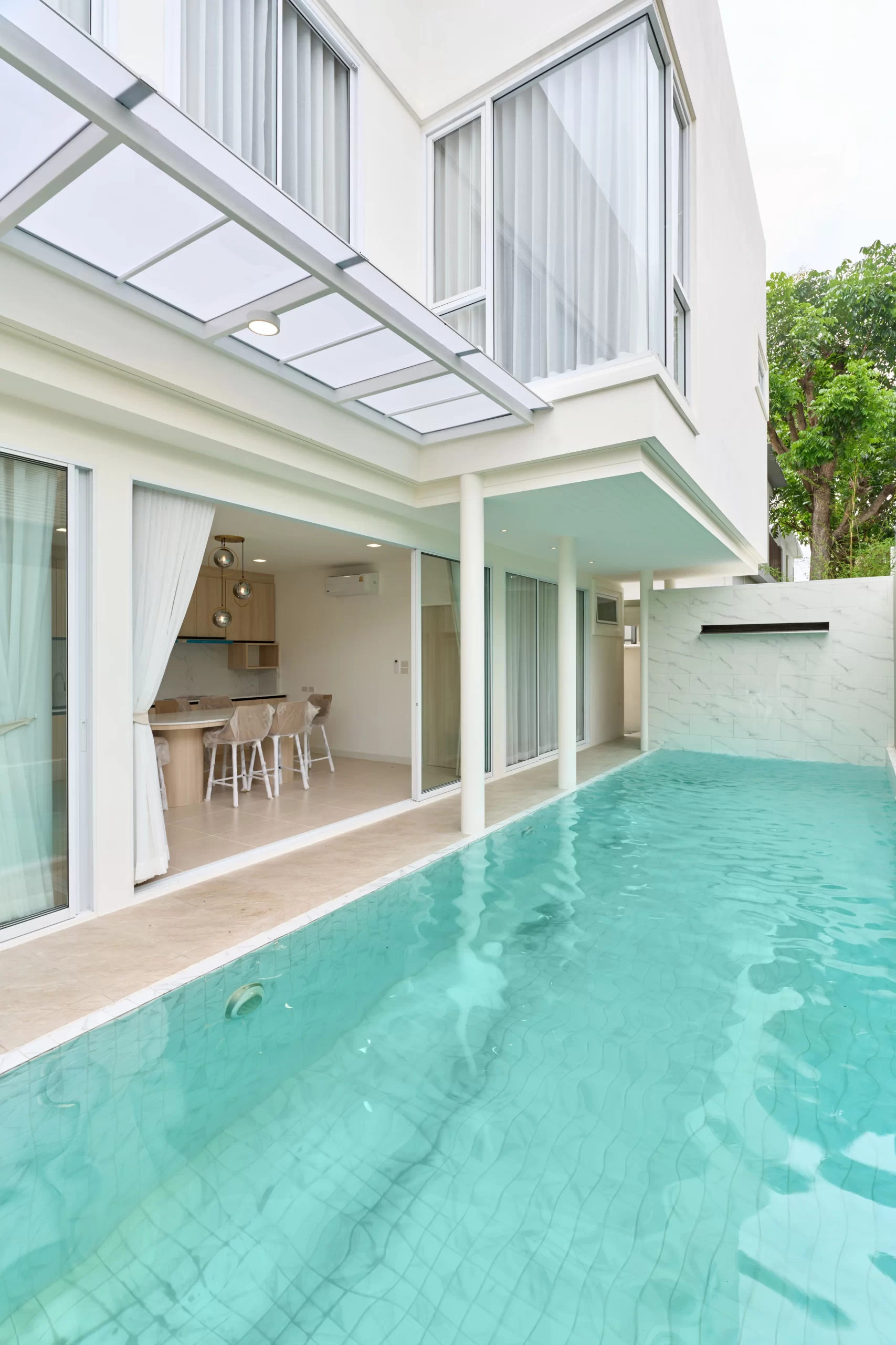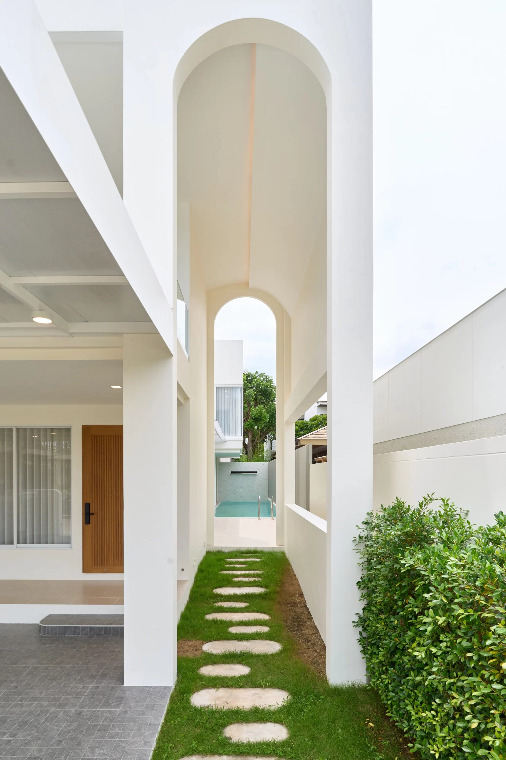 บ้านสไตล์ Modern Luxury ในโครงการเวิลด์คลับแลนด์ อ.หางดง จ.เชียงใหม่ ที่ออกแบบมาเพื่อลูกค้าที่รักความเรียบง่ายแต่ยังคงความหรูหรา โดดเด่นด้วยดีไซน์ส่วนโค้งอันเป็นเอกลักษณ์ และการจัดวาง Space ที่เชื่อมต่อความสุขจากภายในสู่ภายนอกด้วยสระว่ายน้ำส่วนตัว