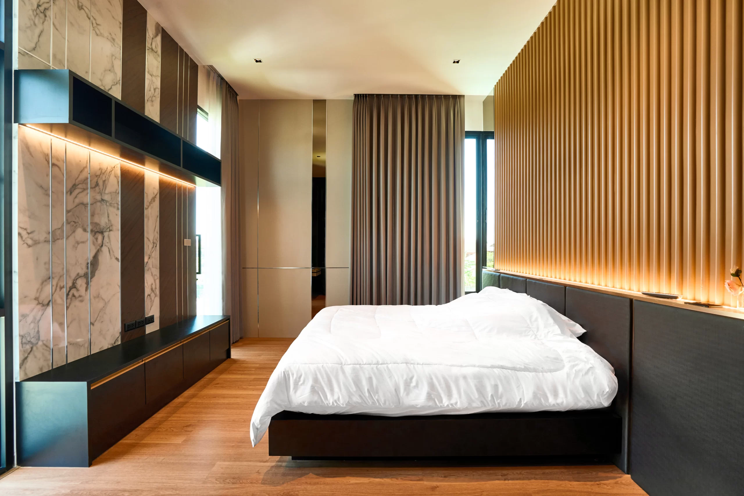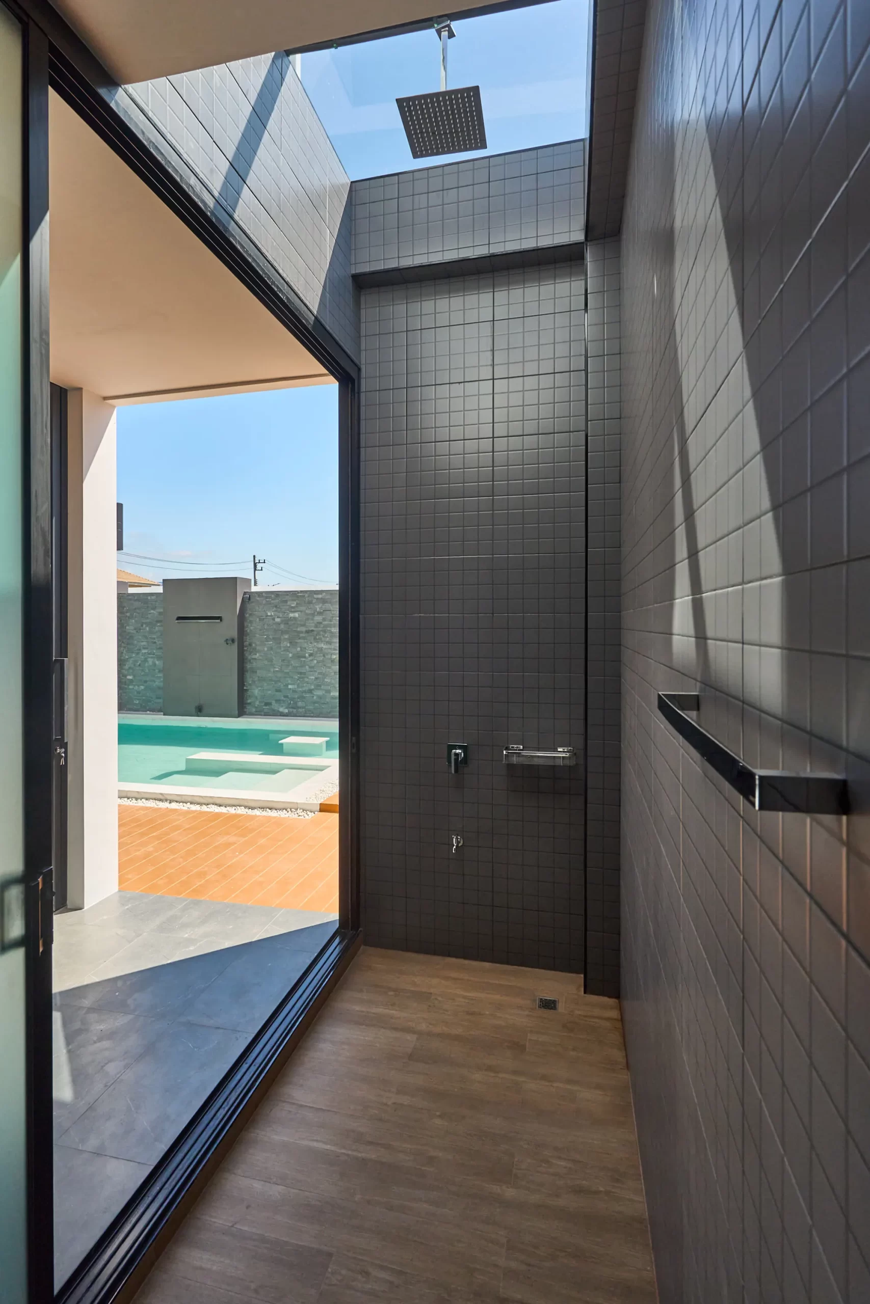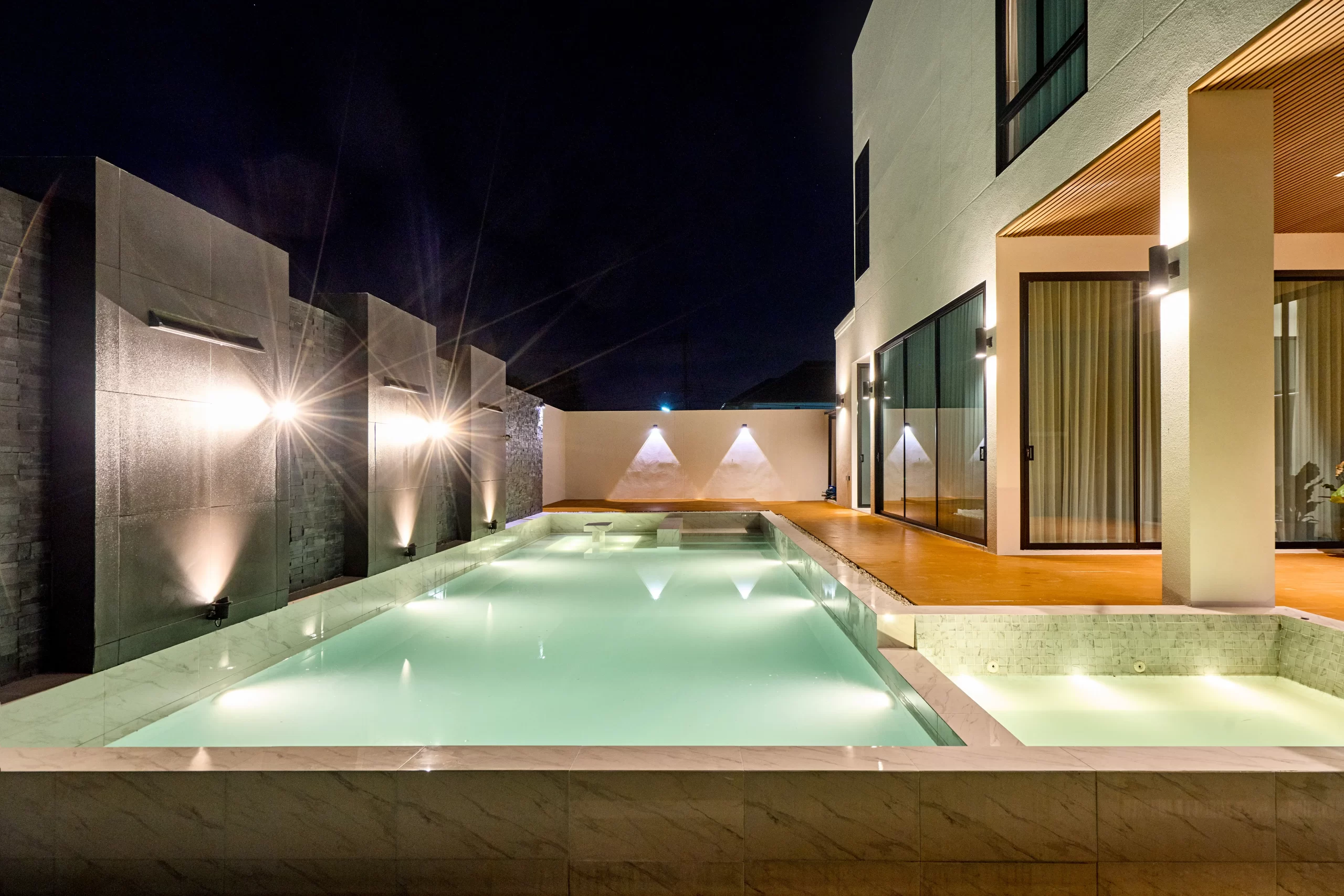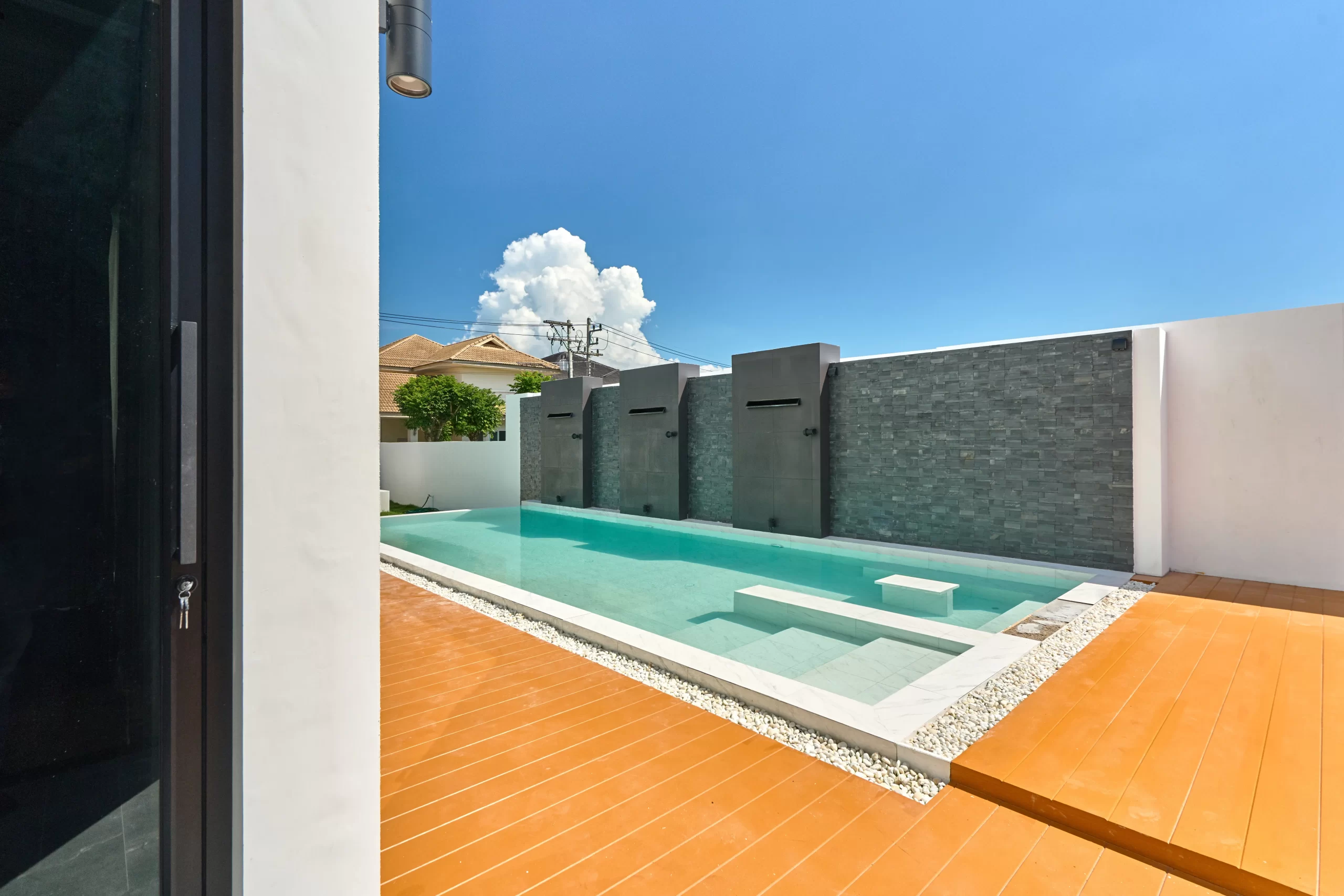 Modern Pool House จ.เชียงใหม่ หลังนี้ โดดเด่นด้วยการออกแบบที่เน้นความหรูหราทันสมัย แต่ยังคงความโปร่งสบายและฟังก์ชันการใช้งานที่ครบครัน สระว่ายน้ำส่วนตัวที่เชื่อมต่อกับพื้นที่พักผ่อน ตอบโจทย์ความเป็นส่วนตัวและการพักผ่อนที่แท้จริง
