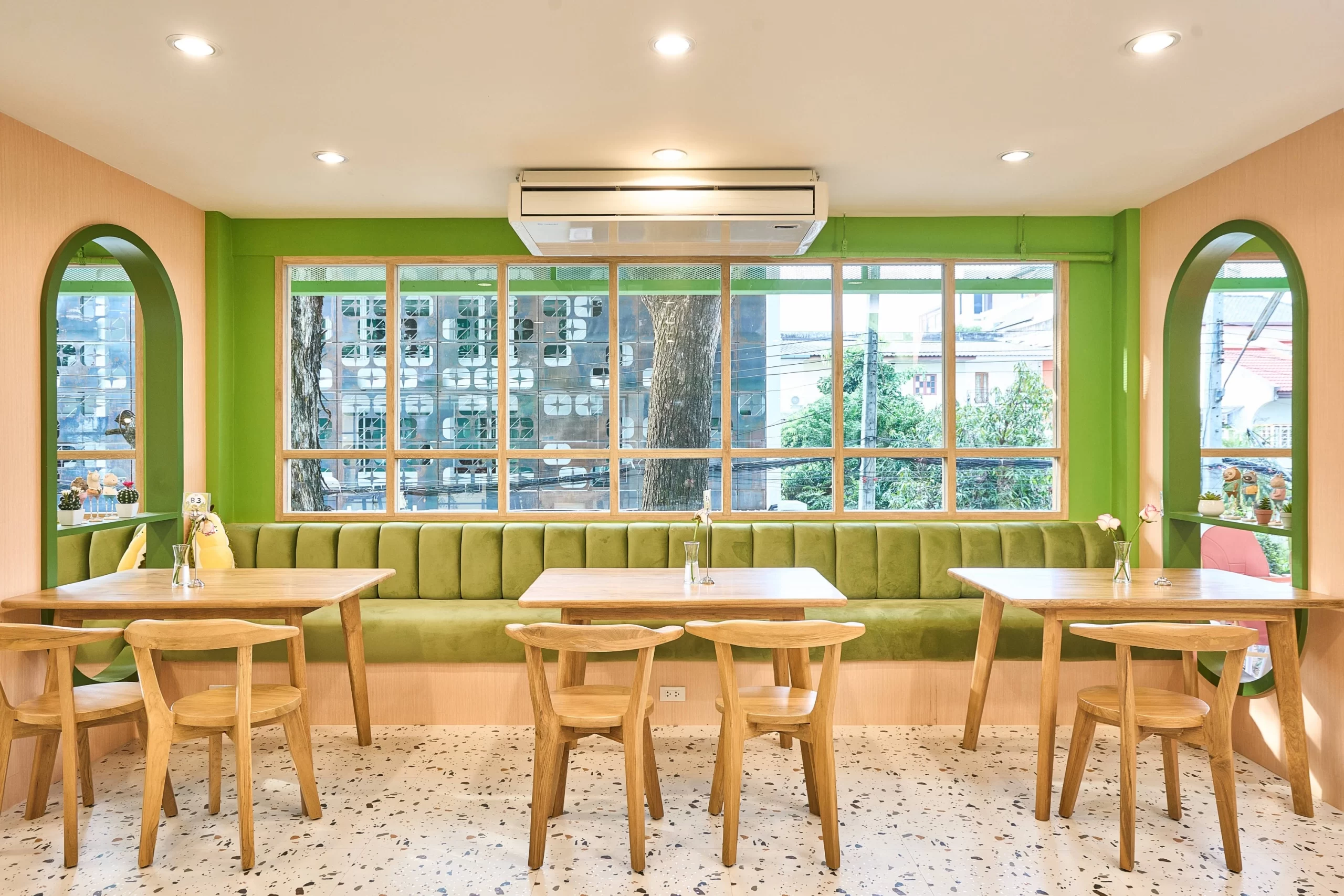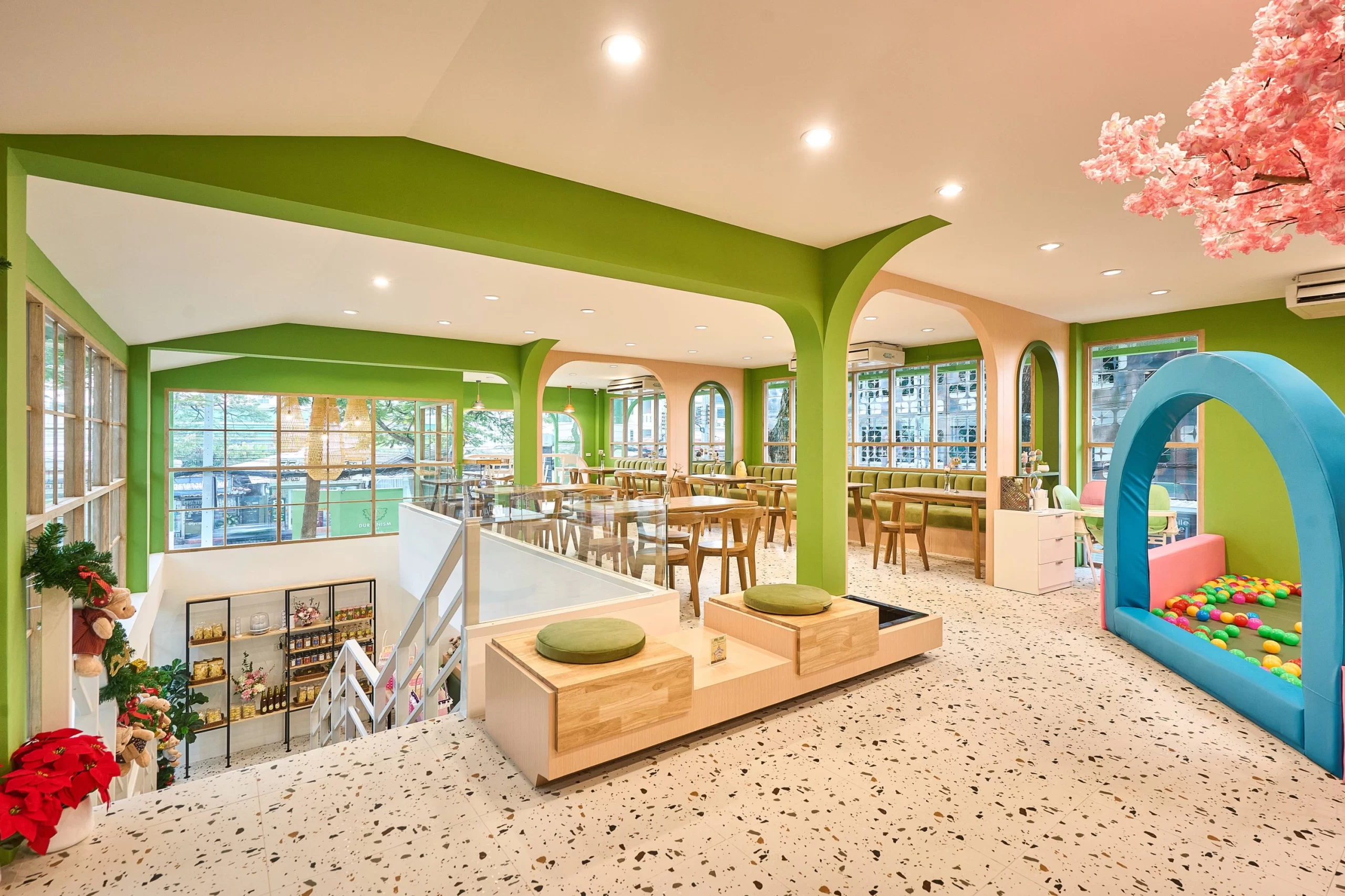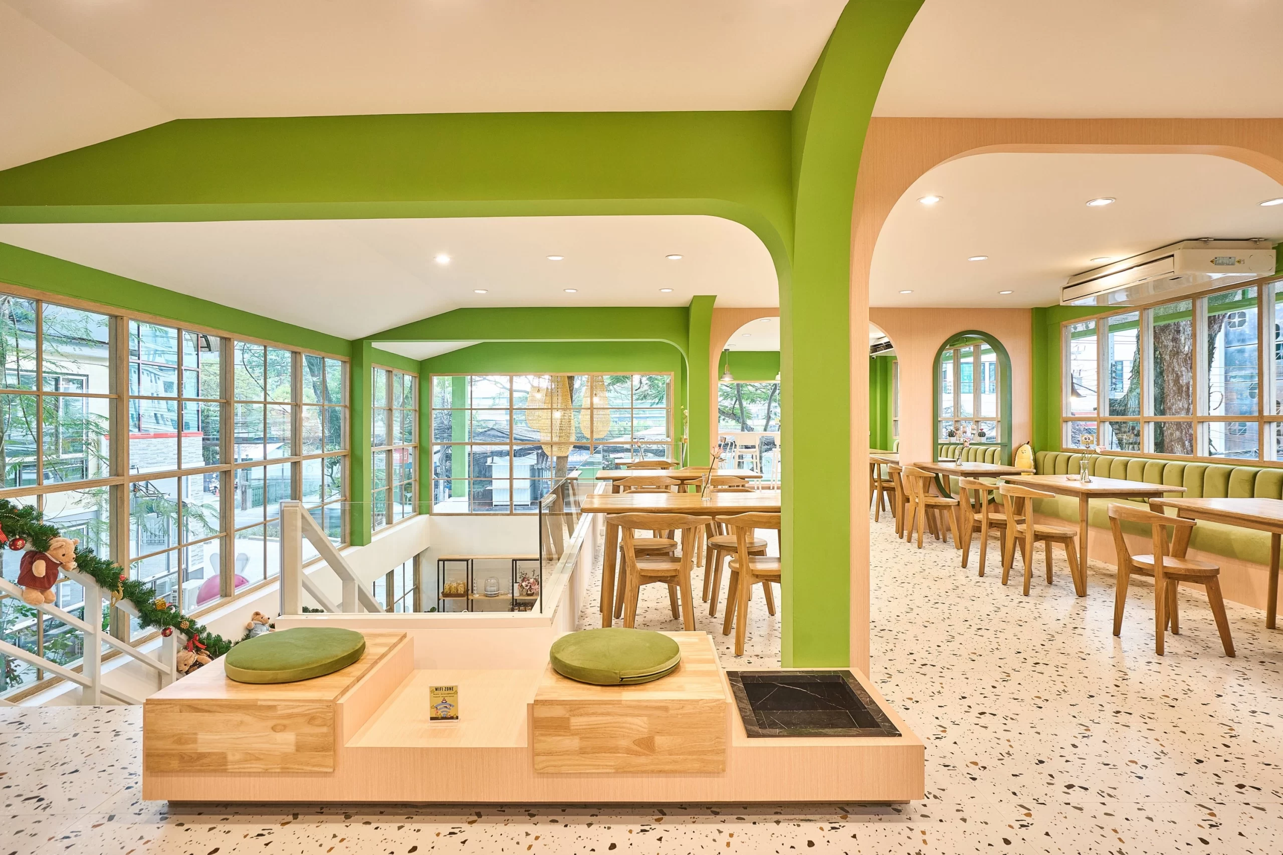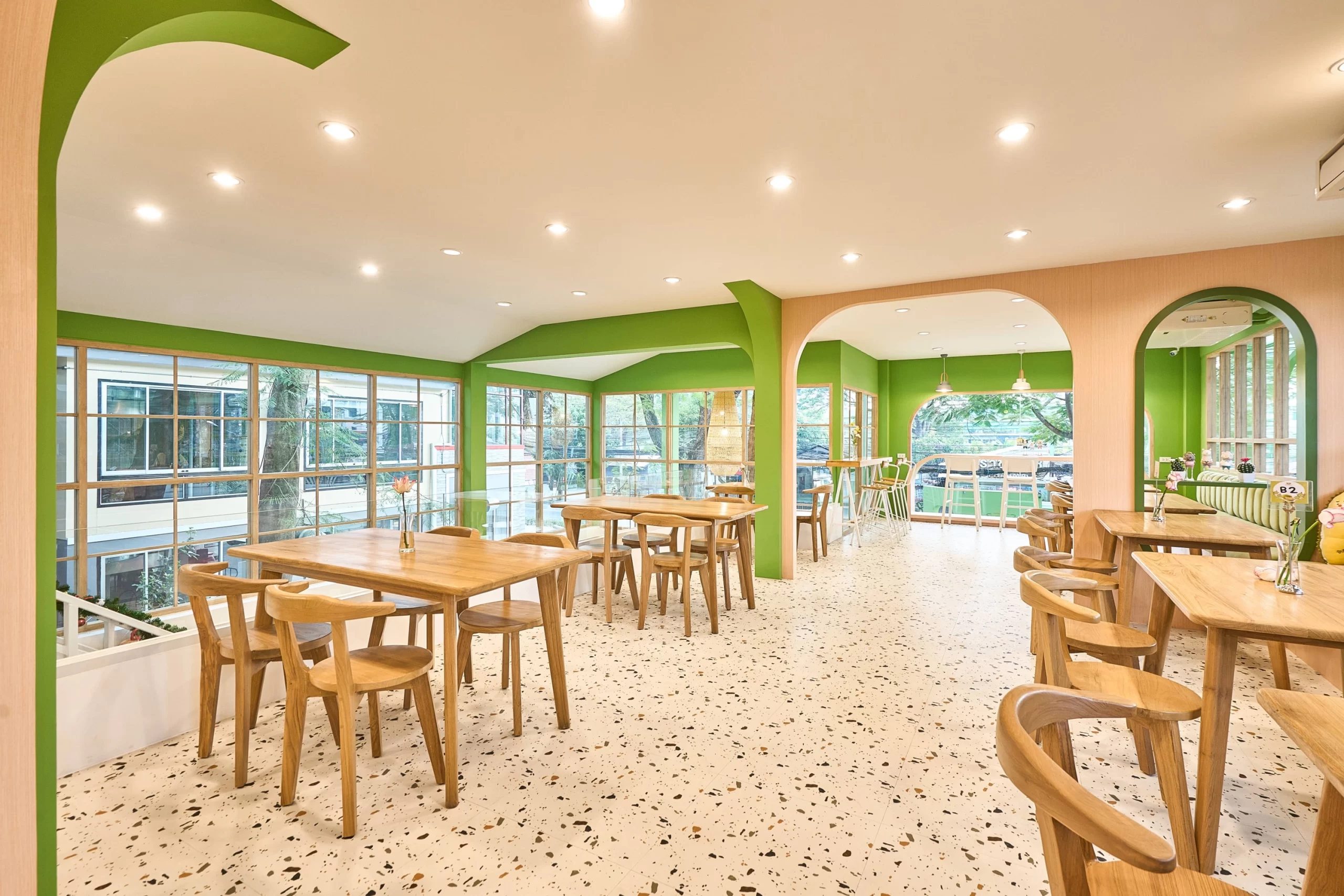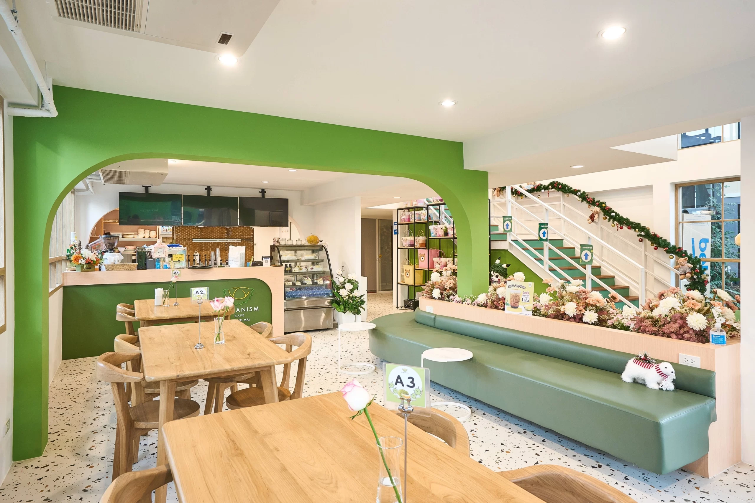 Durianism Café เชียงใหม่  การออกแบบที่ดึงเอาอัตลักษณ์ของ “ราชาแห่งผลไม้” อย่าง “ทุเรียน” มาใช้เป็นหัวใจหลักในการดีไซน์  ผสมผสานกับสไตล์ Modern Minimal ที่ดูอบอุ่นและเป็นกันเอง   ถือเป็นการทำการทำการตลาดผ่านสถาปัตยกรรมที่ชัดเจนมากครับ คือมองเห็นอาคารก็รู้ทันทีว่าเป็นร้านทุเรียน โดยที่ไม่ทิ้งความสวยงามในแบบคาเฟ่สมัยใหม่  ซึ่งสามารถ่ายรูปสวยทุกมุม